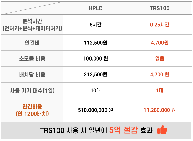 [비용 절감 효과 (HPLC vs TRS100)] 정량 분석
