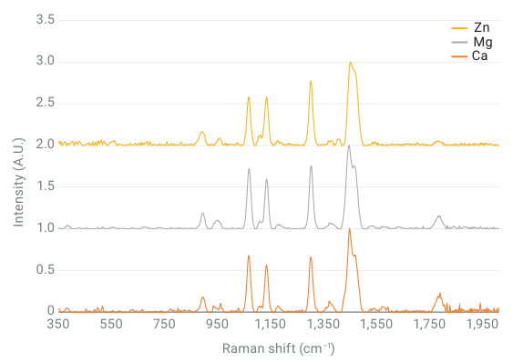 마그네슘·칼슘·아연 스테아레이트는 구조적 유사성으로 인해 기존 라만 분석으로는 정확한 식별이 어렵습니다.