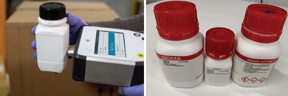 기존 분석 방법에서는 원료를 확인하기 위해 용기를 개봉하고, 시료를 채취하고,
